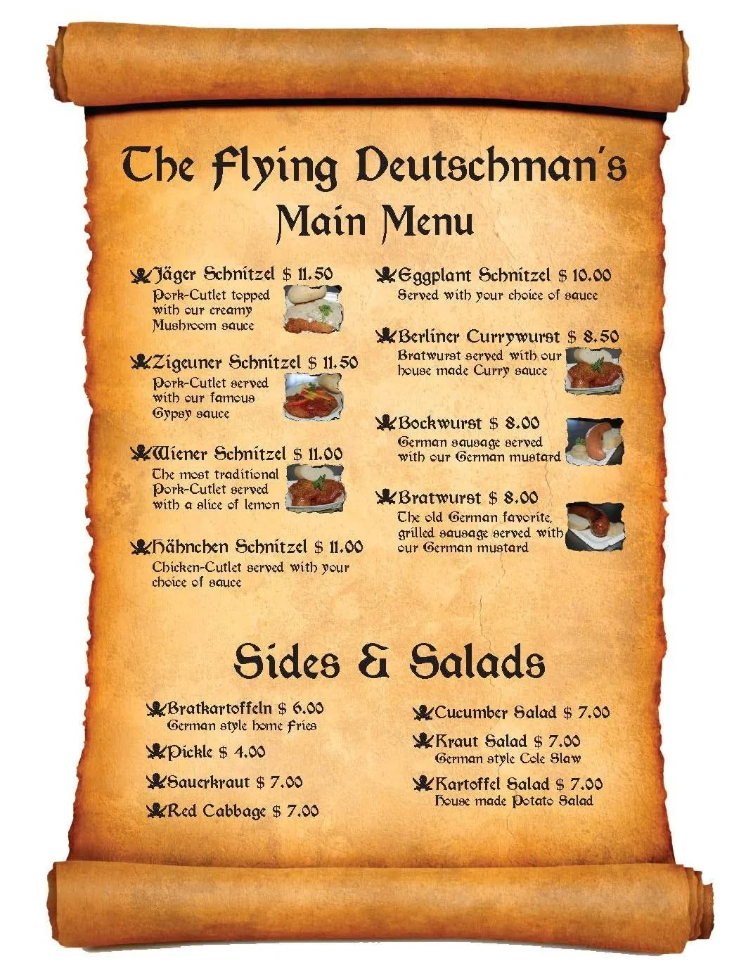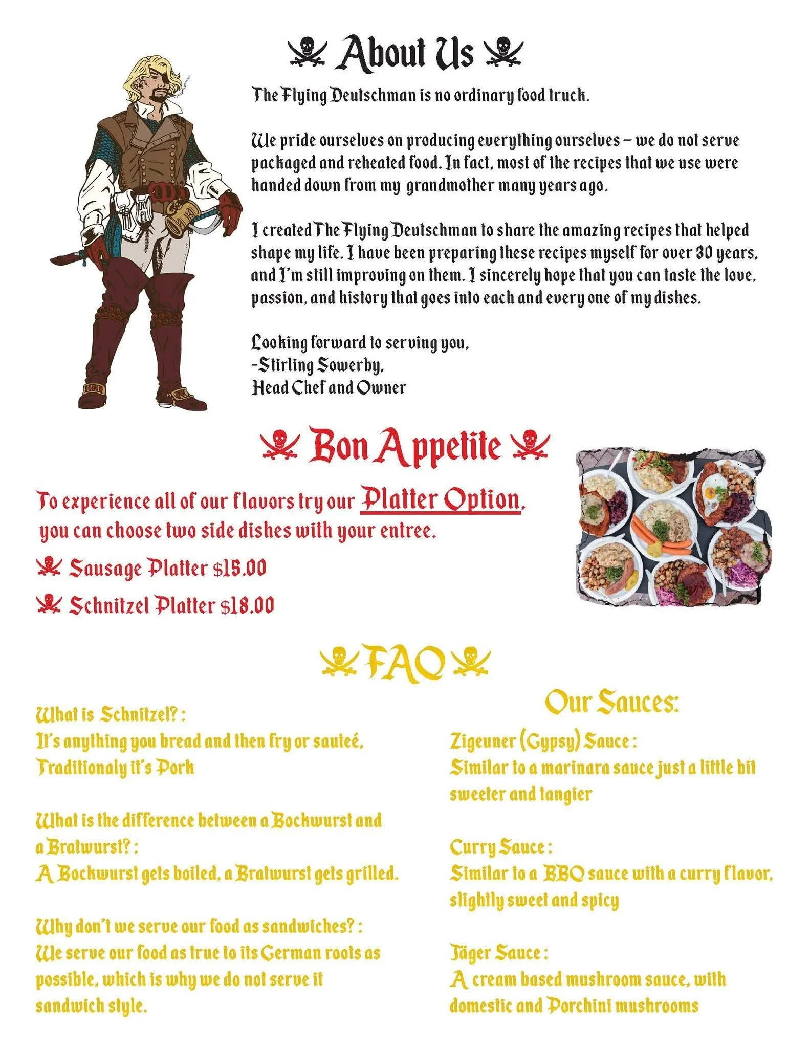 “The Flying Deutschman is what happens when a passionate food lover fuses authentic German cuisine with a desire to provide delicious food for a reasonable price. Everything is made fresh and ready to take on the go at your convenience.”